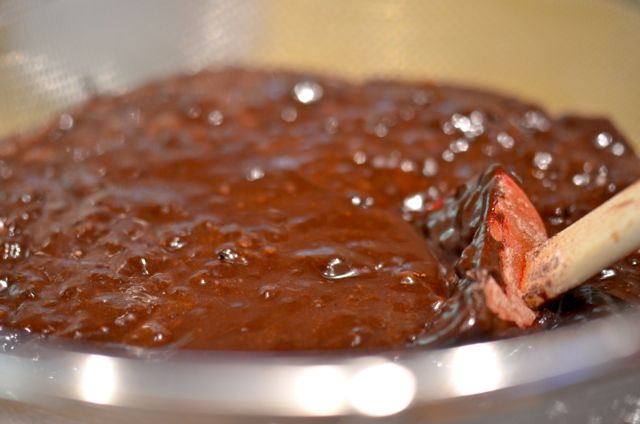 And even better if you use Mast Brothers chocolate. The recipe comes from the Mast Brothers Family Cookbook, and it is an instant classic here at the farm. If you are unfamiliar with Mast Brothers, they are chocolatiers from Brooklyn (Williamsburg, just to make them super-cool). Now, being from California, and usually liking to buy local, you may not expect that we favor chocolate from Brooklyn. But good is good, and Mast Brothers rocks. The flavor and consistency of their chocolate truly stands out. We were lucky enough to visit their shop last fall and it was a delight. Hard to get us to leave.