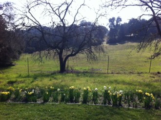 But just when almost all the colors fade, the Daffodils (or Narcissus, your choice) pop up. The yellows and whites gleam amidst the browns and grays of winter. There are always signs of spring in California. That comes with the deal, too.