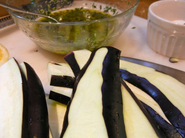 Yes, another vegetable recipe from Yotam Ottolenghi, but this one has more to do with what is going on in our garden than anything. We have eggplant, lots and lots of eggplant. Why? That is very good question. Most years we get a few eggplant, but this year they are taking off. Zucchini and cukes are behind, tomatoes are also slow (even with the heat) but the eggplant are taking over half of a large bed. Gardening always surprises. At least as surprises go, this is of the “pleasant” variety.