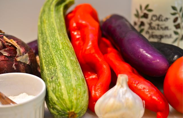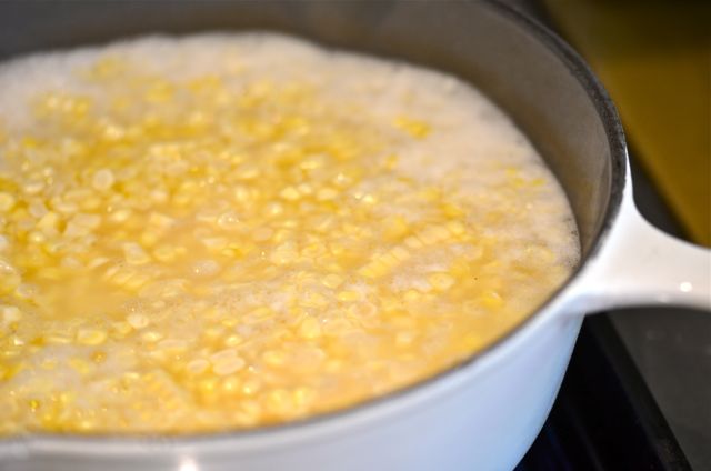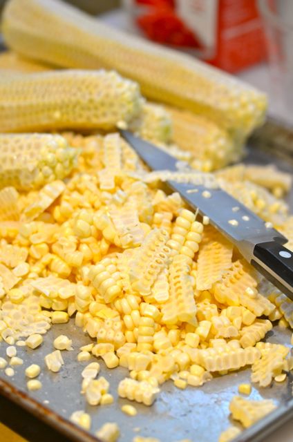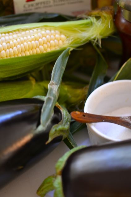 So now we have all these eggplant and need a recipe. Carolyn simply said, “I bet YO has an eggplant recipe”. And, of course, he did. Even better, it combines eggplant with tomatoes and sweet summer corn in a “fresh” polenta dish. We don’t grow our own corn (some epic, EPIC, fails with corn in our past) but there is good local corn at the farmers market so we figured we would try out this dish, and we are glad we did.