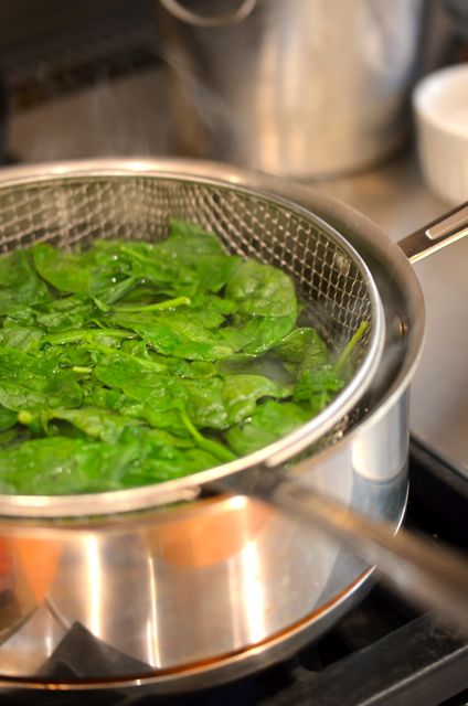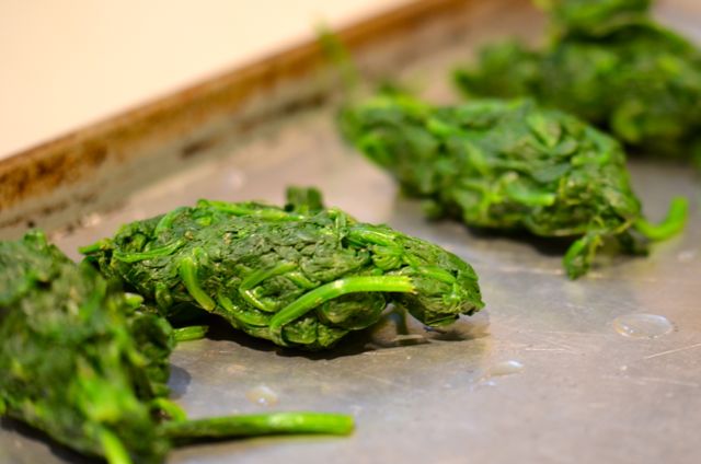 - How you cool your spinach may depend on your kitchen layout. Just be sure to cool it quickly and squeeze out as much moisture as you can.