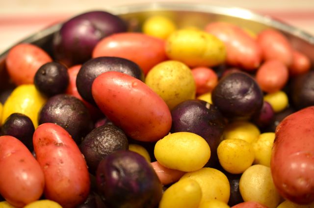 Even in California we know it’s coming. It’s autumn, but the tomatoes are red, ripe and juicy. There’s a nip in the air, but the melons are ripe and fragrant (and oh so tasty…sigh). Peaches fill the farmers market…but we also see glimpses of sweet potatoes, grapes, pumpkins and pomegranates. We may be in the “Cadillac Desert” but, even here, there is no free lunch…seasons change. Harvest.