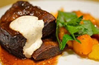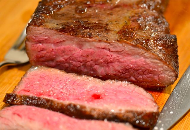 While it’s expensive, the Kobe Tri-Tip is a great intro to Kobe beef. Kobe beef is a special type of beef with extra marbling of fat (fat is flavor) and very tender meat. Kobe is expensive, but the Tri-Tip is one of the more affordable cuts and is easy to prepare. The beefy flavor of the Tri-Tip doesn’t need much help, so we simply prepare a quick rub of olive oil, salt and pepper and let the steak marinate for at least four hours or overnight. Then you simply sear the outside of the meat for flavor and then slowly roast until the internal temperature reaches 130 to 135 degrees for medium-rare.