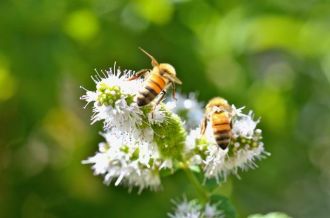 It’s the bees’ garden, we just live in it. We do plant some “magnets” to keep them here, and the bees readily oblige. The garden is one big buzz of the honeybees and the occasional singular humm of the native bumblebees. Most of the herb garden has gone to flower (no biggie) and it literally vibrates all day from the bees. The mint cones are flowering and the bees will camp out and work every single tiny flower. Bees like easy work when they can get it (just like us). We like to think we can taste just a touch of mint in the “forest honey” that comes from our hives. Maybe we can, maybe not. Regardless, the honey tastes good and bees pollinate the plants. It’s good to live in their garden.