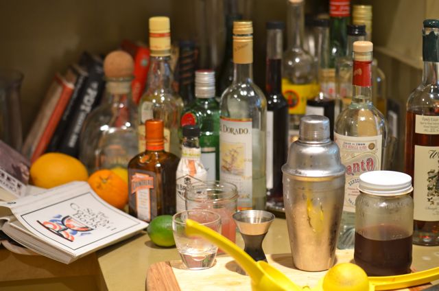 About that time, we decided that mining “classics” for ideas wasn’t going so well and perhaps another approach was in order. So if “classics” weren’t working, how about drawing inspiration from somewhat cheesier “less iconic” cocktails. And this very quickly brought us to the Long Island Iced Tea. We recently posted on the drink from Long Island, it is way better than it should be, and it uses roughly equal parts. But what to do with the homemade grenadine? Well, how about subbing the grenadine for Coke? Kind of like Planters Punch (another semi-uncool cocktail) or a Bacardi Cocktail…and since the seasons are changing how about a little spice from a dash of bitters? (The rules allow it). And finally, the drink was boozy enough so we dropped the vodka, as we still had plenty of other spirits in the drink.