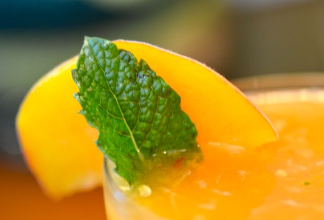 So what to do with the Sun Crests? (Or any great local peach?) Well….eat it! Now. Seriously, eat it right now. But, beyond that, it is good to have a few options. And while we are all for cobblers (and pies, slumps, grunts, crisps, etc.), the best peaches don’t need to be cooked. Raw is best. Sliced peaches with vanilla ice cream or yogurt? Good call. But in a cocktail? Oh, yes. Yes indeed.