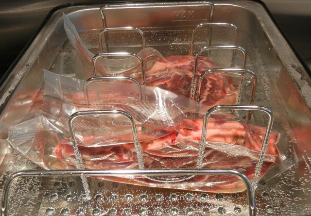 - If using sous-vide: Set the sous-vide temperature to 131 degrees (or your desired temperature). Remove excess oil from the roast and seal in a vacuum bag. Cook sous-vide for at least 4 hours, 6 – 8 is preferred. When the roast is done, heat vegetable oil or bacon fat in a skillet over very high heat. Sear the roast 1 – 2 minutes on each side, or until well browned. Slice and serve.